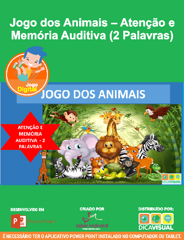 Jogo dos Animais – Atenção e Memória Auditiva (2 Palavras)